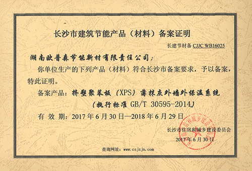 長沙外墻外保溫備案證20180629